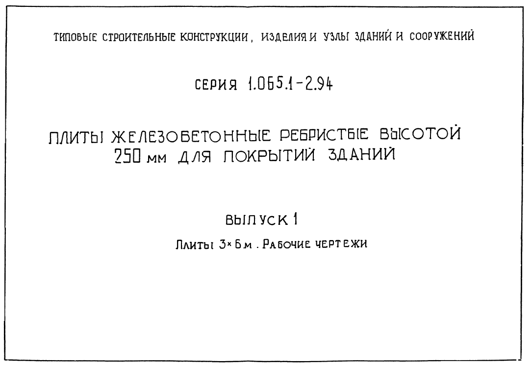 Серия 1.065.1-2/94. Плиты железобетонные ребристые высотой 250 мм для покрытий зданий.