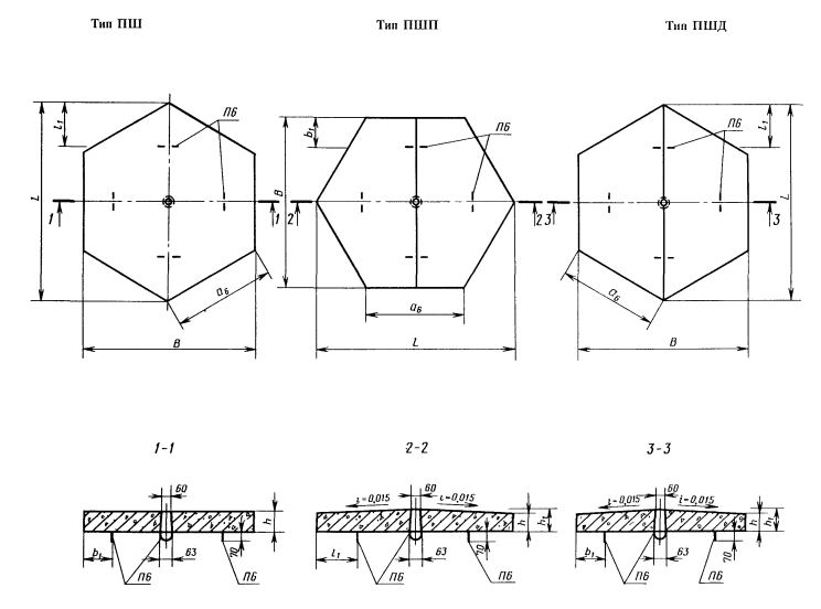 1ПШД 13-30 Плита дорожная шестиугольная осевая диагональная с ненапрягаемой арматурой для  постоянных дорог.