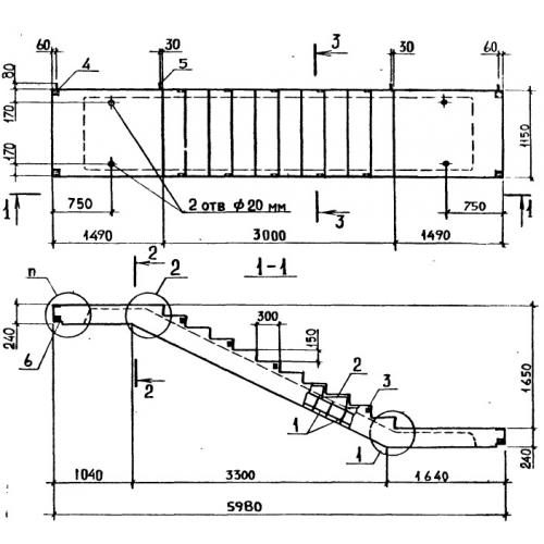 ЛМП 60.11.17 Лестничные марши ребристые с полуплощадками по серии 1.050.1-2.
