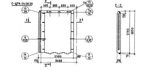 Панели стеновые цокольные СЦТ4л-24.28.25  (Серия 1.117-12с).