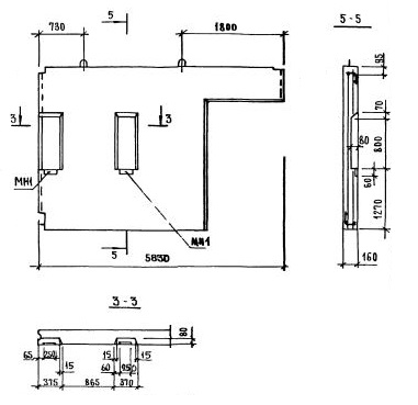 1,4,2 - индексы, характеризующие положение панелей в плане здания и их конструктивные особенности ( 1-панели поперечных стен или панели продольных стен, примыкающих к торцу здания; 4 - панель лестничной клетки, 2 - ширина проёма 1380 мм).