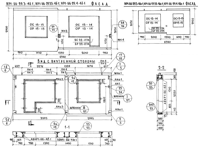 НР1-66.29.3-4бл-1   Наружная стеновая панель рядовая по Серии 1.132-1.