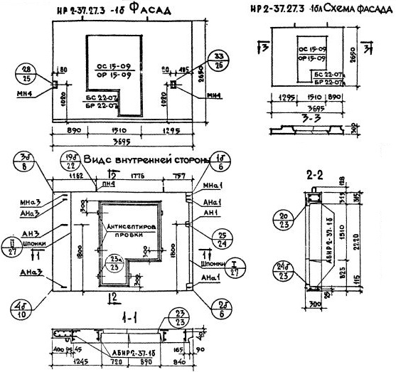 НР2-37.27.3-1бл   Наружная стеновая панель рядовая по Серии 1.132-1.