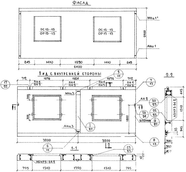 НР5-64.29.35-2   Наружная стеновая панель рядовая по Серии 1.132-1.