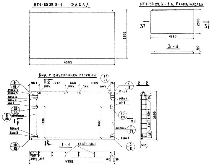 НТ1-50.29.3-1   Наружная стеновая панель торцевая по Серии 1.132-1.