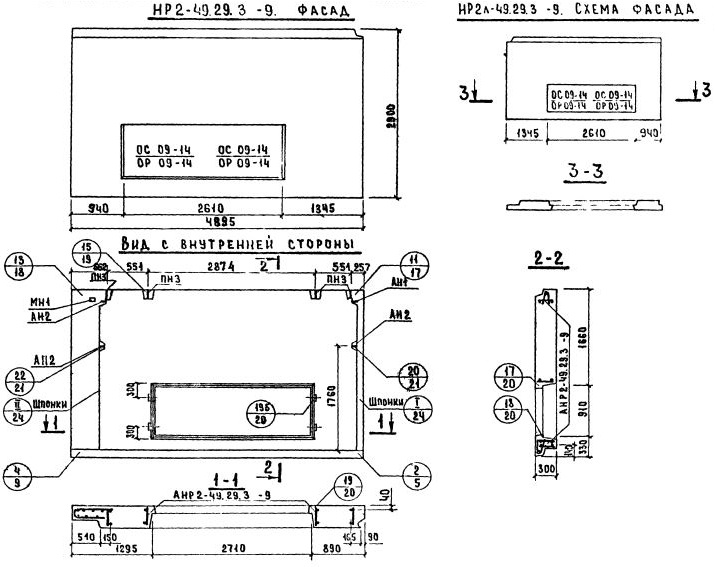 НР2-49.29.3-9    Наружная стеновая панель рядовая по Серии 1.132-2.