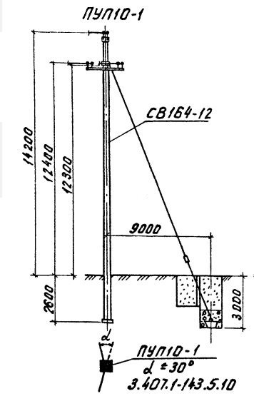 ПУП 10-1  Переходные  угловые промежуточные опоры Серия 3.407.1-143.